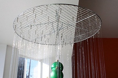 А вот воздушная елка из подвешенных на невидимых нитях шаров.