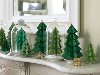 Можно сделать вот такие елки из бумаги, или елки из картона. Здесь вам понадобятся только сами бумага, картон, ножницы и клей.