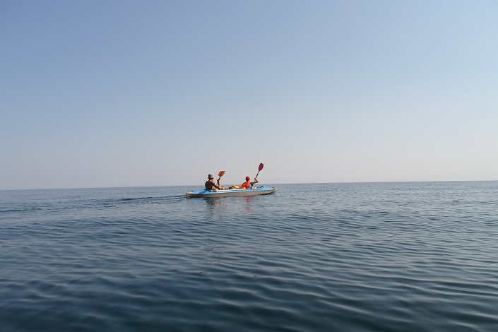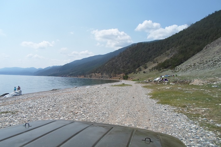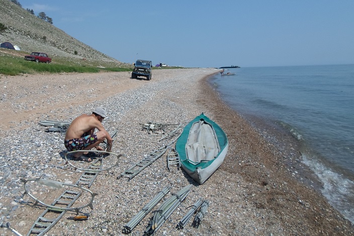 — Наше путешествие началось утром 10 июля. В компании трое взрослых и ребенок. Поехали на УАЗике по дороге Иркутск—Баяндай, в Косой Степи повернули в сторону Бугульдейки. По прибытию пообедали и отправились на берег Байкала. Около двух часов дня начали собирать байдарки, наш инструктор Денис предупредил, что «экстремалить» и ходить по волне не будем, поэтому нам не понадобится укрываться от брызг воды. Примерно к 15:30 у нас на берегу появилось две собранные байдарки. Первая — голубая двухместная, на ней пойдут худенькие Денис и Борис, вторая — зеленая трехместная — для нашей команды с Алексеем, тут же разместятся продукты.