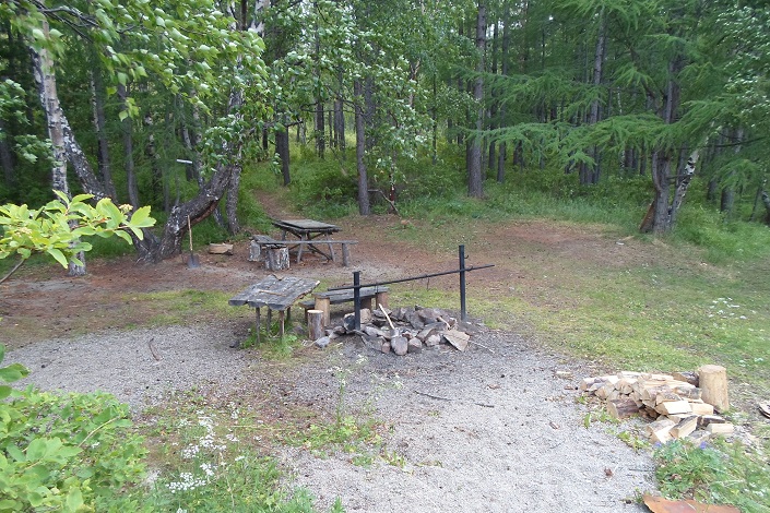 Кроме большой остановки на обед, делаем за день несколько пауз, чтобы отдохнуть и размяться, и с каждой чалкой Денис становился все более озабоченным, а Байкал все более волнительным. Днем около 16:00 стояли довольно долго, мужики даже успели вздремнуть, но волна не уменьшилась. Во время следующей остановки надеваем штаны и достаем куртки (пронизывающий холодный ветер с воды), нашли в лесу чудесную готовую стоянку, сидим на скамейках за столом, с удовольствием пьем горячий чай из термоса и едим.