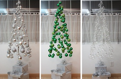 А вот воздушная елка из подвешенных на невидимых нитях шаров.