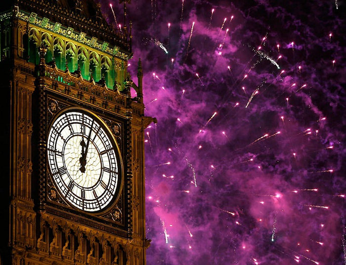 Салют над башней Елизаветы во время празднования Нового года в Лондоне.