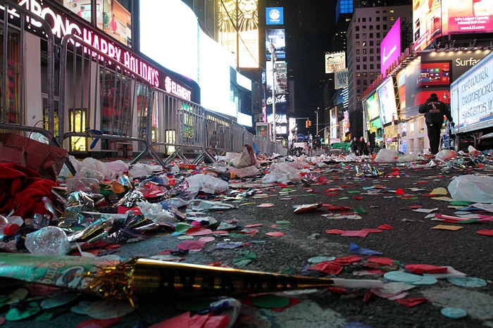 Раннее утро после празднования Нового года на Таймс-сквер в Нью-Йорке.