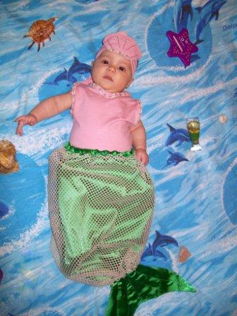 Мне очень хотелось,чтобы свой первый новый год доча встретила в новогоднем костюме,да невспомнит,но фото ей расскажут!И вот иголки,нитки,ткань и доча русалка!