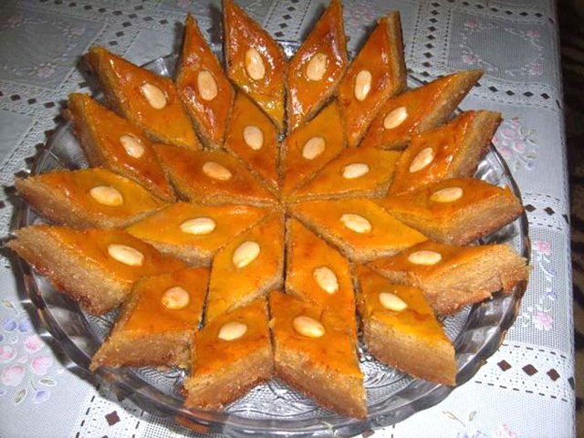 Второй раз повторите процедуру: орехи - яблоки - орехи - тесто. Третий раз выложите все, кроме яблок: орехи - 3-4 слоя теста. Сверху смажьте щедро сливочным маслом, положите дольки ореха и острым ножом нарежьте пахлаву ромбиками или квадратами.