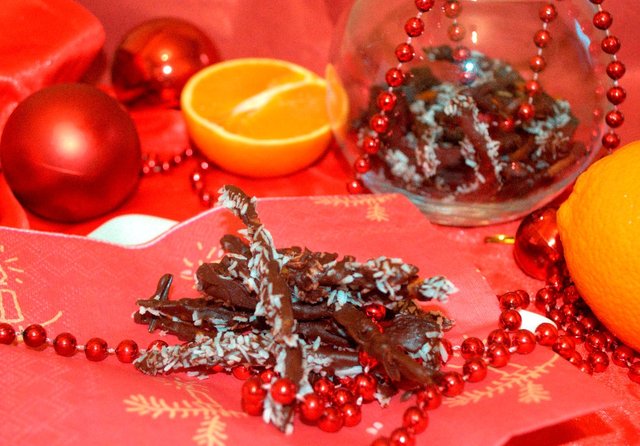 Эти конфеты пришли к нам родом из Франции. Апельсиновые цукаты в темном шоколаде, это восхитительный подарок близким, а так же замечательные конфеты для новогоднего стола!