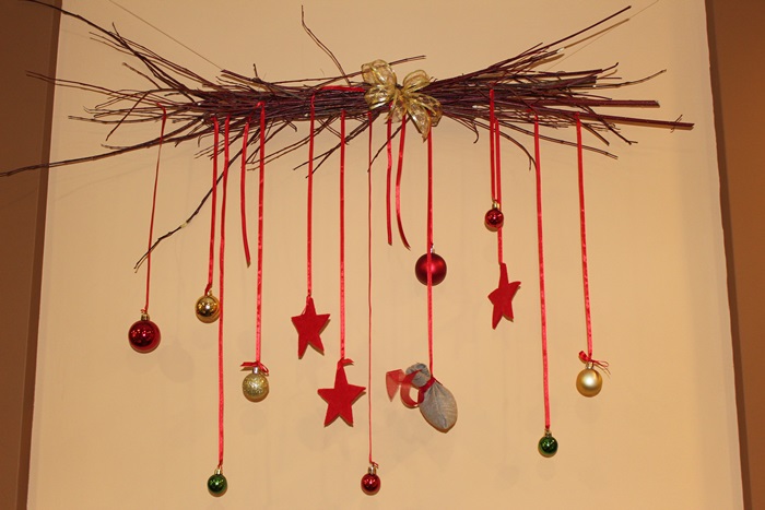 Наступающий 2014 — год синей деревянной лошади. Поэтому дизайнеры советуют использовать в украшениях больше природных материалов, в частности дерева. К дереву можно добавить всевозможные елочные игрушки, бусы и прочие красивые мелочи. Приветствуются любые креативные идеи.