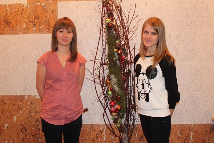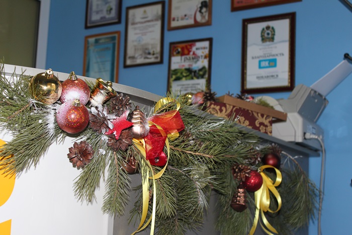 В нашем офисе Лена и Таня соединили различные стили, поэтому каждый кабинет стал по-своему оригинален. Девушки сделали необычные гирлянды из бумаги, елочных и обычных веток, украсили их яркими игрушками, шишками и лентами. Шишки и мох они использовали для декора подсвечников и создания оригинальных поделок — новогодних коробочек.