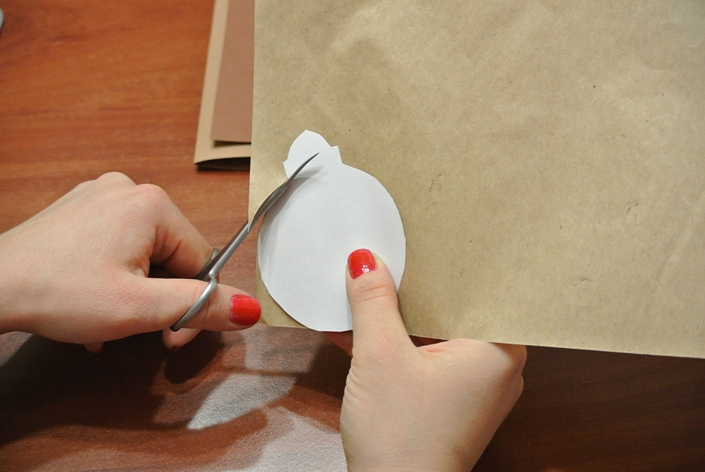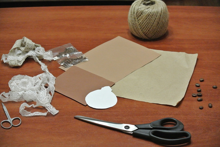 — бумага в коричнево-бежевой цветовой гамме контрастных цветов (мы использовали цветную бумагу бежевого и коричневого цвета и грубую упаковочную);