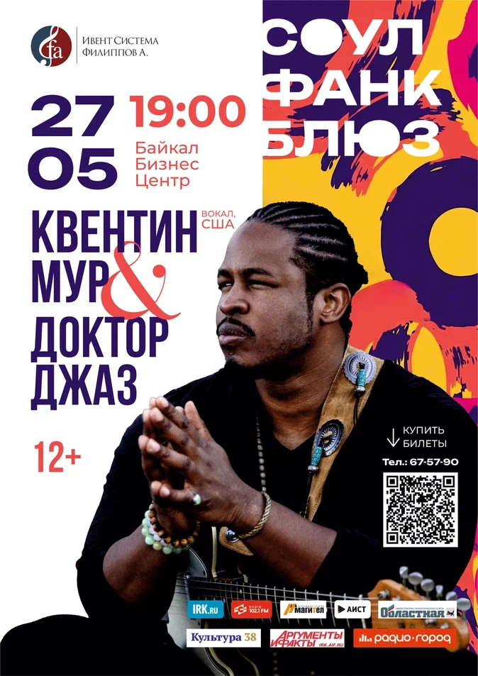В Иркутске выступит харизматичный нео-ретро-соул-исполнитель Квентин Мур. Концерт пройдёт при участии ансамбля «Доктор Джаз».