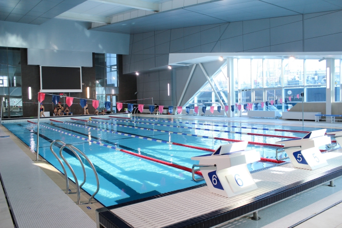 В комплексе две чаши: малая — её протяжённость 25 метров и глубина от 1,1 до 1,5 метра, и большая — 50-метровая, соответствующая олимпийским стандартам с глубиной 2,2 метра. Одновременно в бассейнах может плавать до 168 человек, и им будет комфортно: 48 вмещают шесть дорожек малой чаши и 120 — десять дорожек большой. Как говорит заместитель директора Центра развития спортивной инфраструктуры, руководитель водно-спортивного комплекса Вячеслав Петрунькин, большой бассейн при необходимости (например, для соревнований) можно разделить на две полноценных 25-метровых чаши специальным бортом.