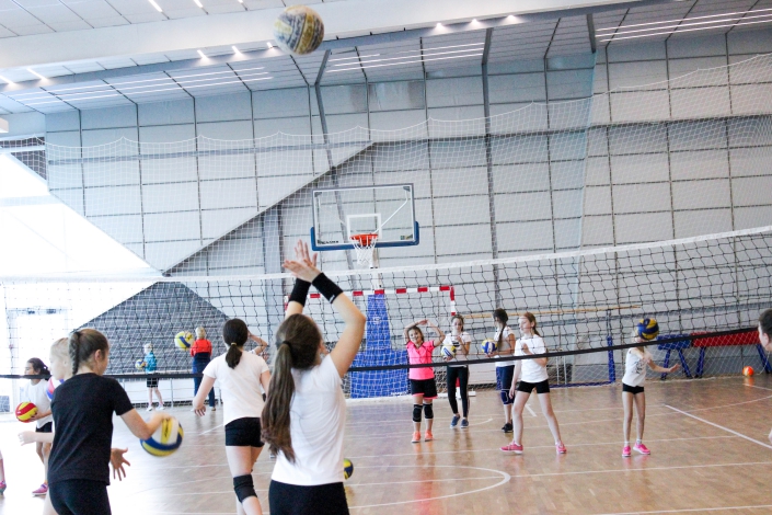 Площадь водно-спортивного комплекса — 15 тысяч квадратных метров. В огромном здании хватило места не только для бассейнов: здесь есть тренажёрный зал, класс для фитнеса и сухой разминки перед плаванием, многофункциональная площадка для занятий мини-футболом, баскетболом и волейболом со специальным покрытием, которое уменьшает нагрузку на суставы и делает занятия спортом комфортными и безопасными. Эти площадки также доступны всем желающим, а не только профессиональным спортсменам.