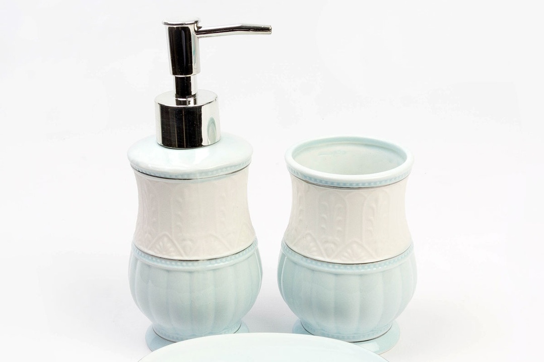 - набор в ванную комнату — мыльницы и подставки для щеток выполнены из керамопластики, а значит прочные, водостойкие, не красятся, цвета со временем не тускнеют;