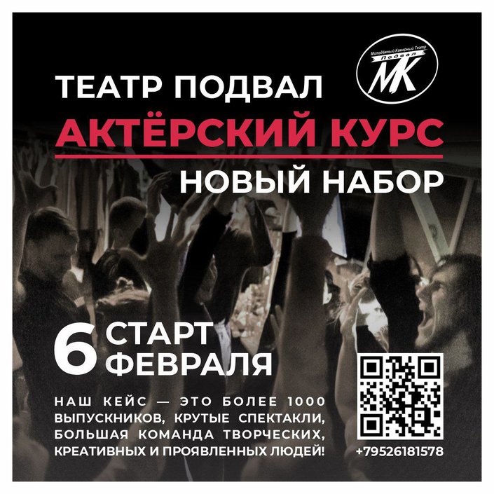 Актёрский курс. Новый набор в театре «Подвал». Старт 6 февраля 2026 года. Вас ждёт девятимесячное погружение в мир актёрского мастерства: