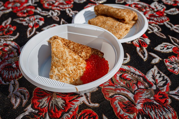 — традиционные масленичные блины со всевозможными начинками, сытные горячие блюда (ароматный плов и шашлыки), согревающие напитки (пряный глинтвейн) и многое другое.