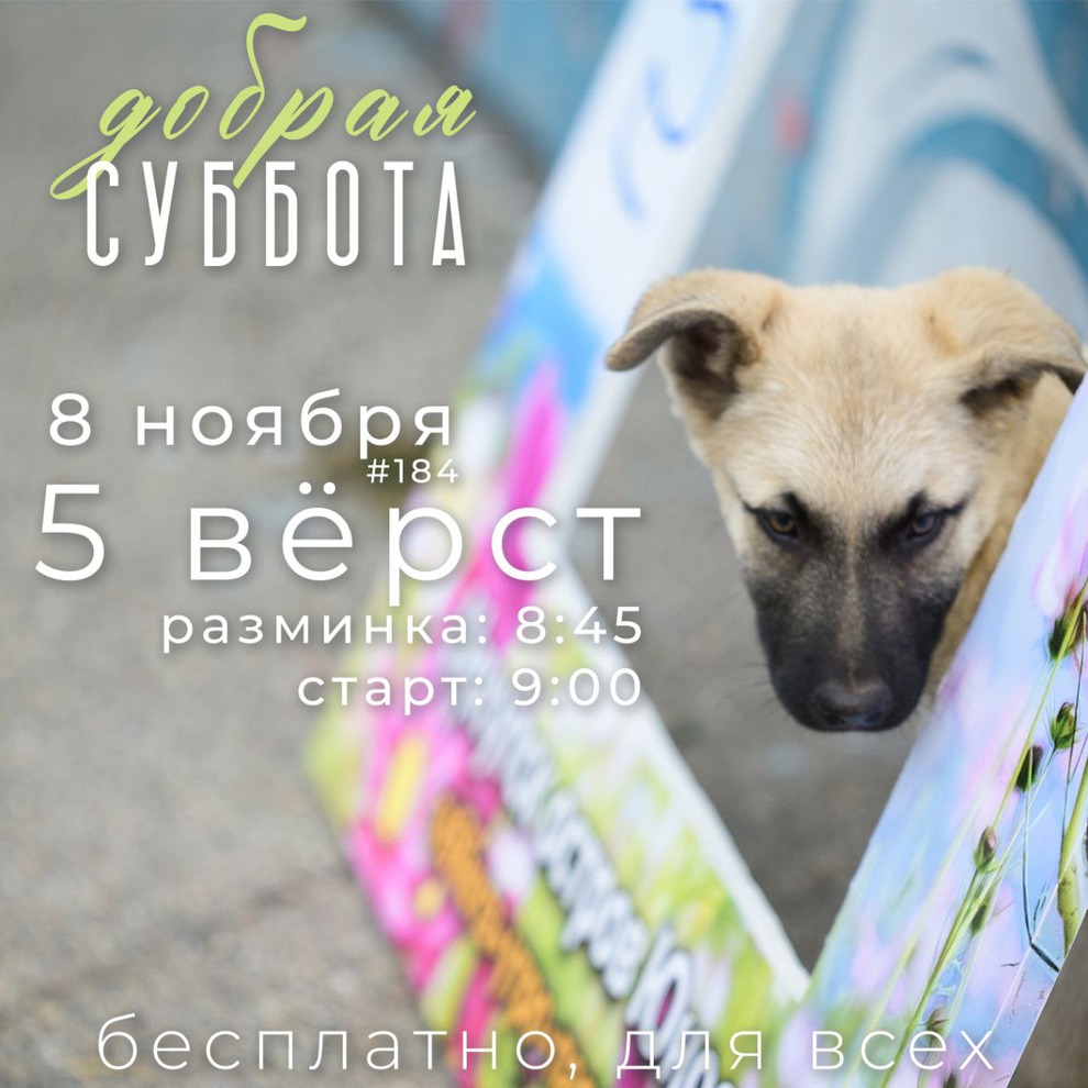 Присоединяйтесь к уже традиционной «Доброй субботе». Вы можете помочь финансово или принести корм и другое необходимое для собачек прямо на старт общегородской субботней пробежки «5 Вёрст».