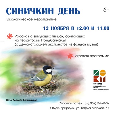 Отдел природы Иркутского областного краеведческого музея приглашает детей и их родителей на увлекательное театрализованное мероприятие «Синичкин день»