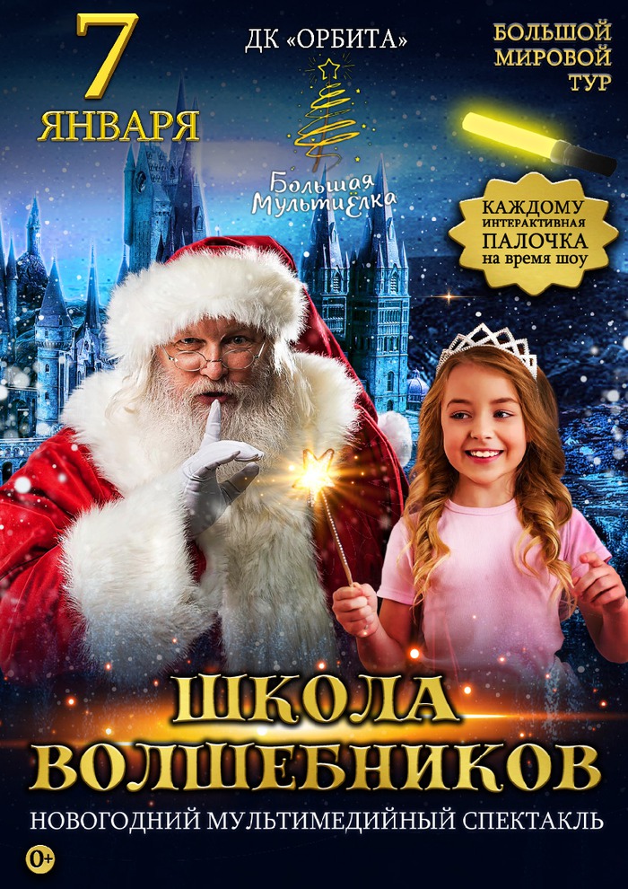 «Школа волшебников» — это мультимедийный спектакль на большом экране, рядом с которым оживают сказочные герои. Чары начнут действовать после взмаха волшебной палочки, которая выдаётся каждому зрителю.