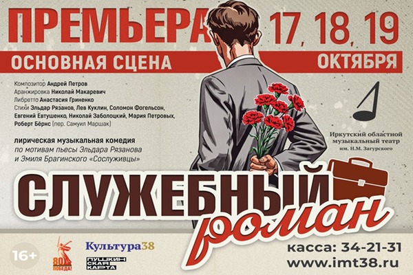 Иркутский музыкальный театр имени Н.М. Загурского приглашает на премьеру спектакля «Служебный роман» по мотивам пьесы Э. Брагинского и Э. Рязанова «Сослуживцы».