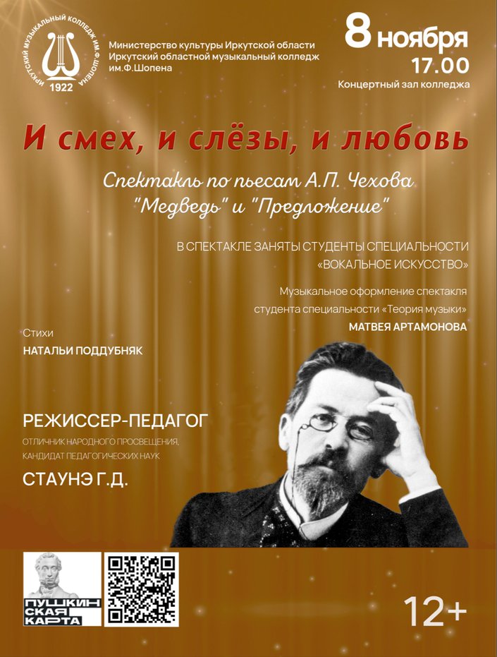 Спектакль в Иркутском областном музыкальном колледже им. Ф. Шопена по произведениям А.П. Чехова «Предложение» и «Медведь».