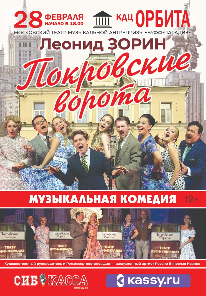 Впервые в Иркутске! Московский театр музыкальной антрепризы «Буфф-Парадиз» представляет музыкальную комедию «Покровские ворота» по пьесе Леонида Зорина и сюжету одноименного фильма Михаила Казакова.
