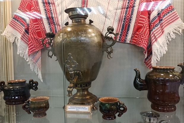 На выставке из фондов Музея истории города Иркутска им. А.М. Сибирякова представлены самовары-термосы, электрические самовары, формы для выпечки пряников, а также для вафель.