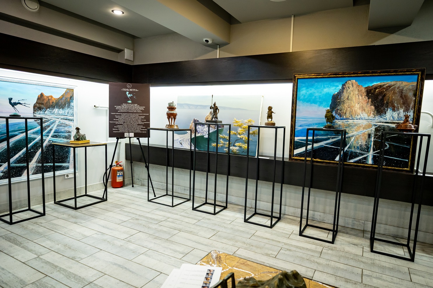 Визуальный ряд выставки дополнен живописными полотнами, создающими единое культурное пространство. Картины с этническими бурятскими сюжетами служат своеобразным аккомпанементом к бронзовым изваяниям, погружая зрителя в атмосферу легенд и преданий кочевых народов.