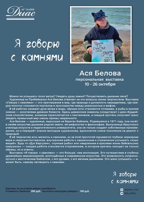 Ася Белова — художница, выросшая на берегах Байкала. Родившаяся в 1971 году, она несёт в своём искусстве дыхание родной земли, её мифологию и философию. Выпускница Иркутского училища искусств и педагогического университета, она не только создает собственные произведения, но и передаёт знания молодым художникам, вдохновляя новое поколение на диалог с природой.