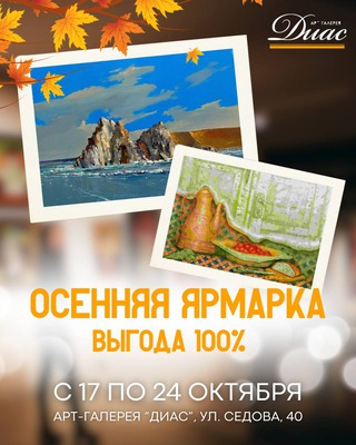 С 17 по 24 октября 2025 года арт-галерея «Диас» приглашает на ярмарку искусства — атмосферное событие, где можно не только полюбоваться живописью, но и приобрести картины по цене от 5000 рублей.