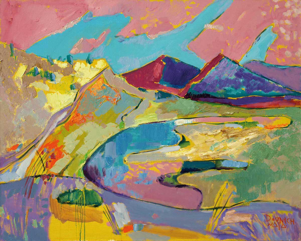 Автор смело работает с цветом и фактурой холста: через контрасты и насыщенные оттенки она доносит разнообразие и энергию локальных пейзажей.