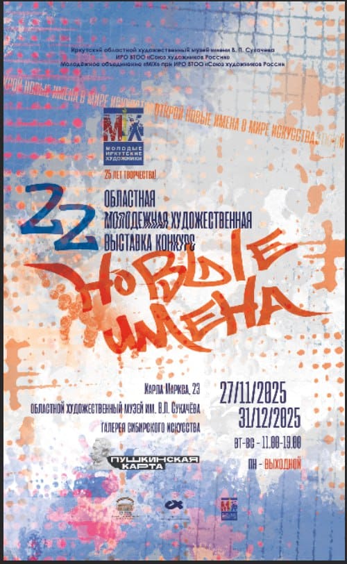 ХХII областная молодёжная художественная выставка-конкурс «Новые имена» в Галерее сибирского искусства представляет более сотни работ, охватывающих весь спектр изобразительного искусства: живопись, уникальная и печатная графика, скульптура, монументальное искусство, плакат, цифровое искусство, ДПИ, храмовое искусство, книжная графика, ювелирное и камнерезное искусство.