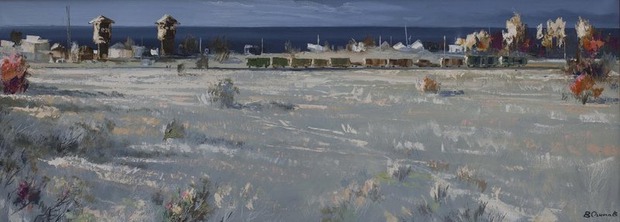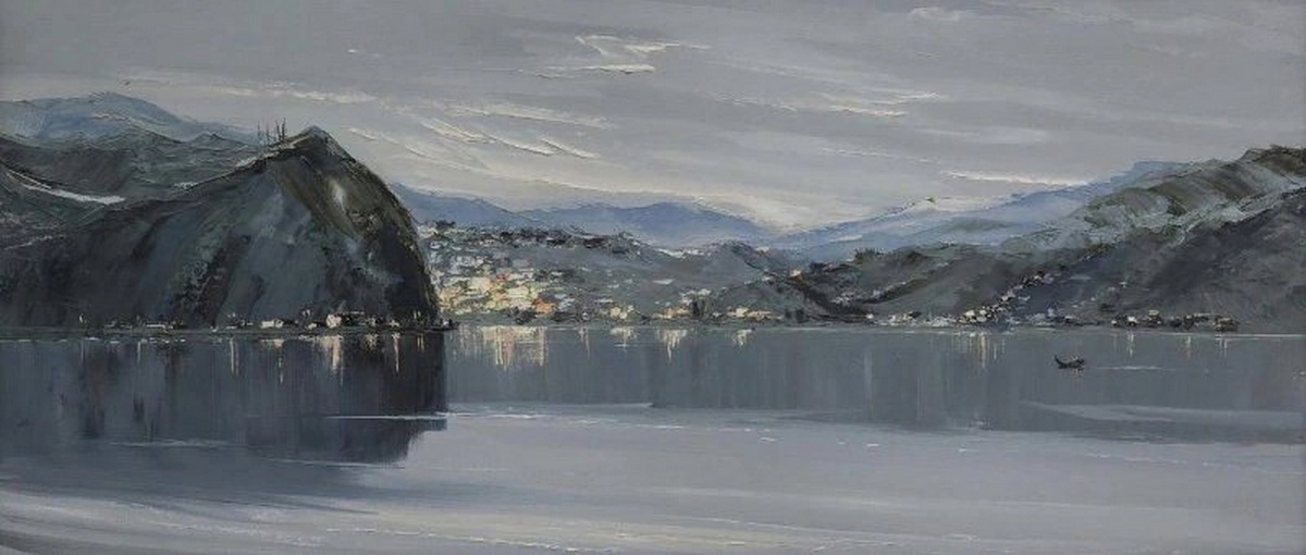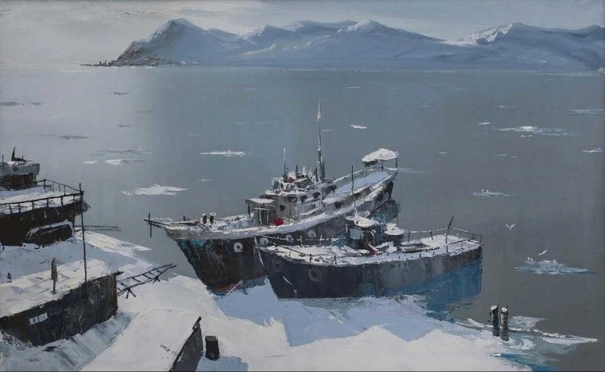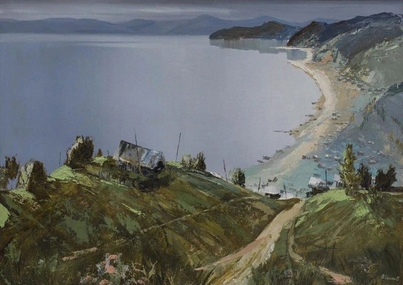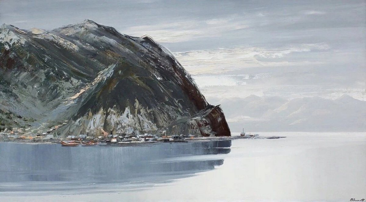 Лаконичная, но изысканная серебристая гамма вод в различных вариациях изредка расцветает яркими красками жанровых сюжетов. Байкал на полотнах Владимира Игоревича спокоен, но зрителя как будто не оставляет ощущение ветра, предчувствие непогоды. Внутренняя жизнь пульсирует в особом ритме, резонируя с дыханием Байкала, как будто художник и озеро сошлись характерами: они понимают друг друга без слов, и каждый занят своим делом.