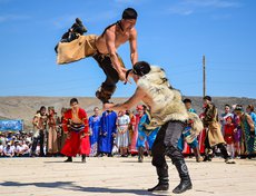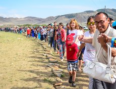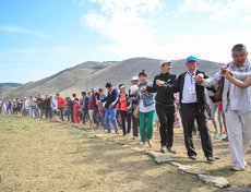 13 и 14 июня в долине реки Анга, у подножия горы Ехе Ёрд, проходил пятый юбилейный фестиваль этнической культуры «Ёрдынские игры».Именно здесь издревле проводились межродоплеменные игрища. Это древнее обрядовое действо называлось «Ёрдын наадан» (Ёрдынские игры), название произошло от священной горы Ёрд.В этом году фестиваль собрал гостей и участников из Монголии, Южной Кореи, Мексики, Канады, Австрии, Франции, Германии, Чехии, республик Бурятия, Тыва, Саха (Якутия), Горного Алтая, Красноярского и Забайкальского краев.С утра белые (посвящённые) шаманы и старейшины провели обряд Ехэ Тайлаган «Дэлхэй дайдын мургэл» — поклонение духам священной горы Ёрд.Красочное открытие создало особую атмосферу. Творческие коллективы продемонстрировали историю и богатейшую культуру азиатских народов.Зрителям представили красивую легенду о богатыре, одержавшим победу над злыми силами и спасшим красавицу-дангину, которая стала его женой.Новинкой культурной программы фестиваля стал конкурс улигершинов, исполнителей одической поэзии. На фото: улигершин готовится к выступлению.Пожалуй, самыми зрелищными в спортивной программе фестиваля стали состязания по многоборью «Игры баторов (богатырей) Срединного мира».В течение двух дней участники состязались в мас-рестлинге (перетягивание палки).Самые ловкие соревновались в прыжках.Самые сильные приняли участие в соревнованиях по перетаскиванию камня весом 125 килограммов.Самые быстрые приняли участие в забеге вокруг горы Ёрд.Соревнования по стрижке овец привлекли внимание гостей фестиваля. Такое зрелище нельзя было пропустить.Одним из самых красочных событий культурной программы фестиваля стал конкурс «Красавица Ёрдынских игр».За титул главной красавицы фестиваля соперничали девушки из Иркутской области, Бурятии, Саха (Якутии) и Забайкальского края.Победительницей конкурса красоты стала представительница Иркутской области Екатерина Торноева.Завершился фестиваль танцем ёхор вокруг годы Ёрд.Следующие Ёрдынские игры пройдут в 2017 году.