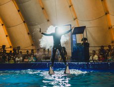 До конца лета в Иркутске работает шатер Московского передвижного дельфинария. В июне артисты представили горожанам новую шоу-программу «Пираты Карибского моря» — костюмированное представление с захватывающим сюжетом и головокружительными трюками дельфинов.