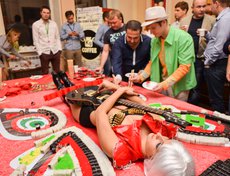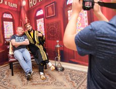 Перед показом в холле кинотеатра организовали развлекательную программу. Звучала музыка, гости праздника фотографировались, участвовали в конкурсах, смотрели лазерное шоу.