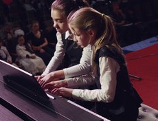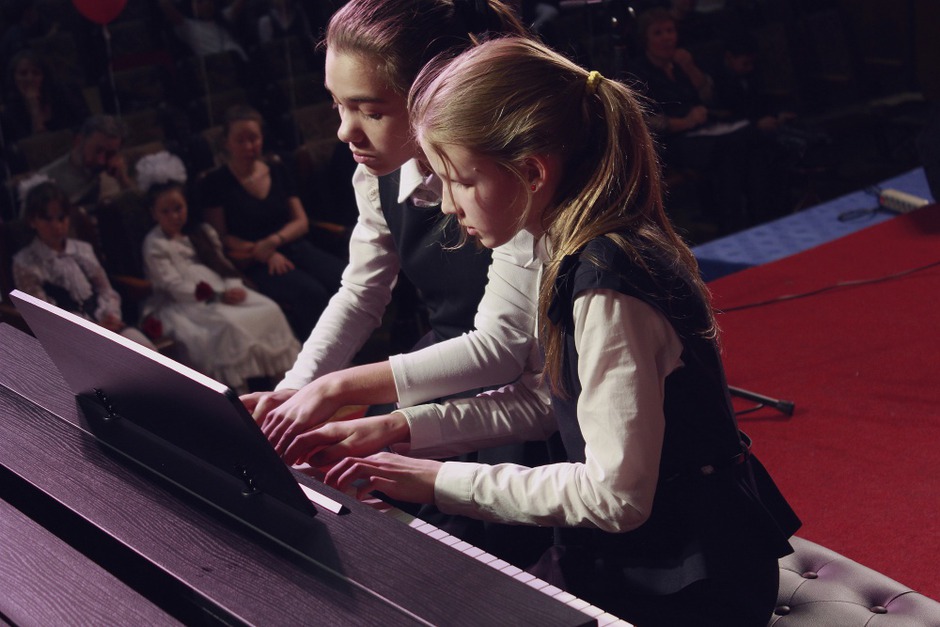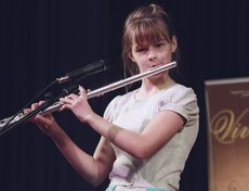 — Софья Мещерякова и Ева Сафронова (флейта и фортепиано, Детская музыкальная школа № 2 Иркутска).