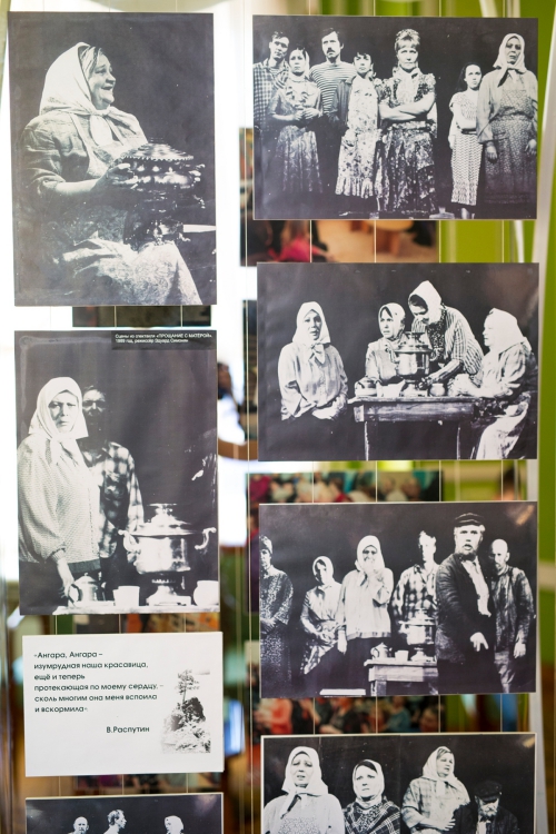 15 марта в зелёном зале Иркутского академического театра им. Н.П. Охлопкова состоялось открытие выставки «Прощание с Матёрой», посвящённой 80-летию со дня рождения Валентина Распутина. На презентации присутствовали земляки Валентина Григорьевича — жители Усть-Удинского района, которых иркутский театр пригласил на премьерный показ спектакля «Прощание с Матёрой». Посетить выставку любой желающий может до начала и после окончания спектаклей и во время антракта в зелёном зале драмтеатра.