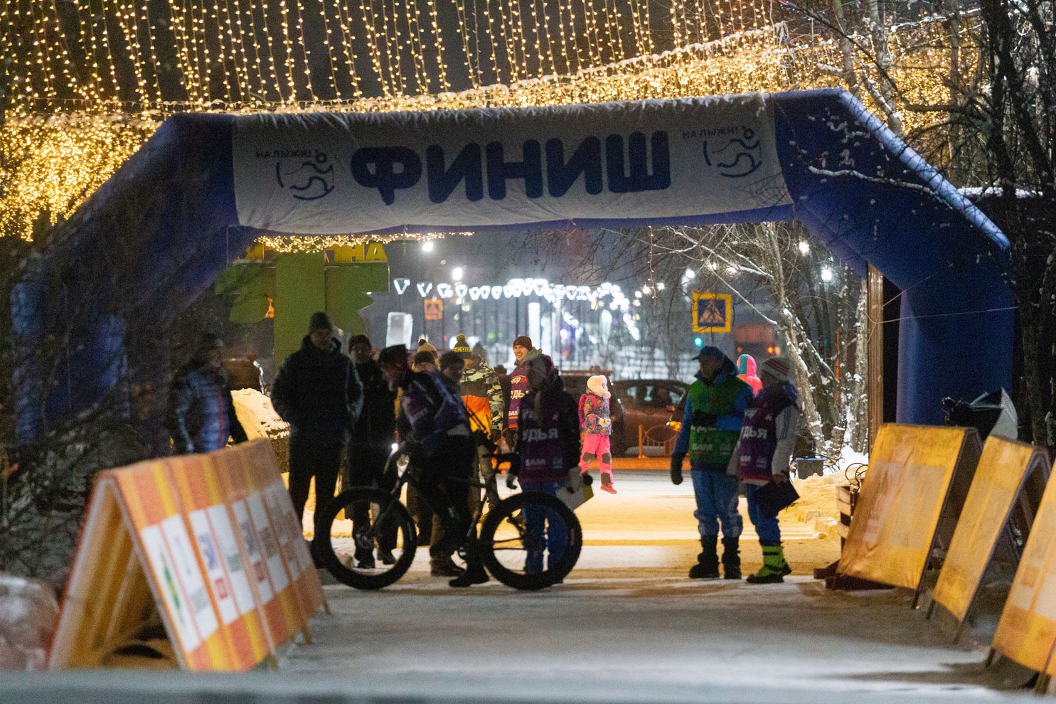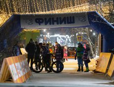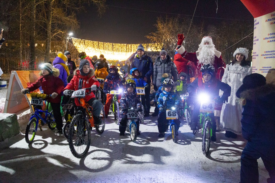 Сразу после основного старта на дистанции вышли 22 ребенка. По традиции, всех приветствовали Дед Мороз и Снегурочка, а каждый финишер получил сладкий подарок.