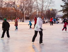 Вход на каток бесплатный. Работают пункты проката коньков, лыж, тюбов. Есть тёплое кафе.