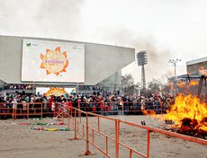 Главное городское мероприятие состоялось на площади возле дворца спорта «Труд». В завершение праздника сожгли чучело зимы.