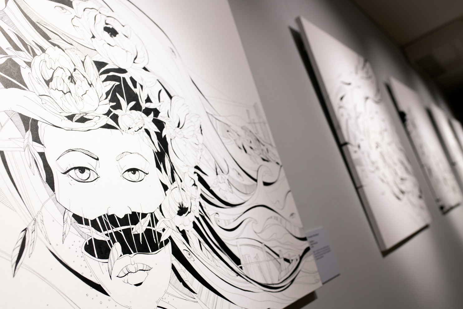 Катерина Томилова — художник, иллюстратор, график, преподаватель, член Союза художников России. Катерина пробует себя в разных экспериментальных техниках, но специально к выставке «Дыхание сна» она создала исключительно графические работы.i