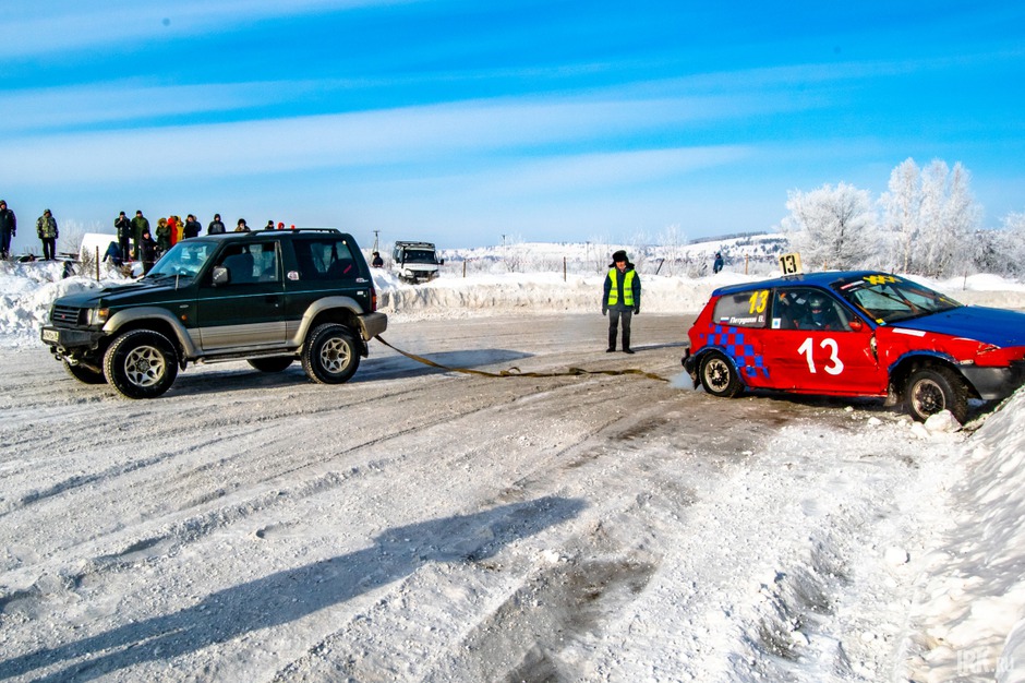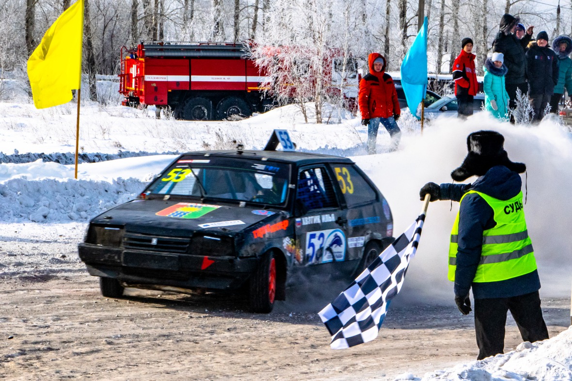 В каждом дивизионе состоялось по два заезда с массовым стартом. В течение каждого заезда гонщикам предстояло проехать шесть кругов. Чтобы участники не сбились со счёта, судья на трассе подавал им сигналы специальными флагами — последний круг обозначался крестовым флагом, а финиш шахматным. Впрочем, дойти до финиша удалось не всем участникам: гонка не обошлась без переворотов и вылетов с трассы в сугробы, расположенные по бокам. Сами пилоты не пострадали, а некоторые продолжили участие на помятых автомобилях.