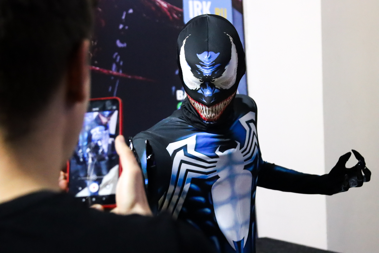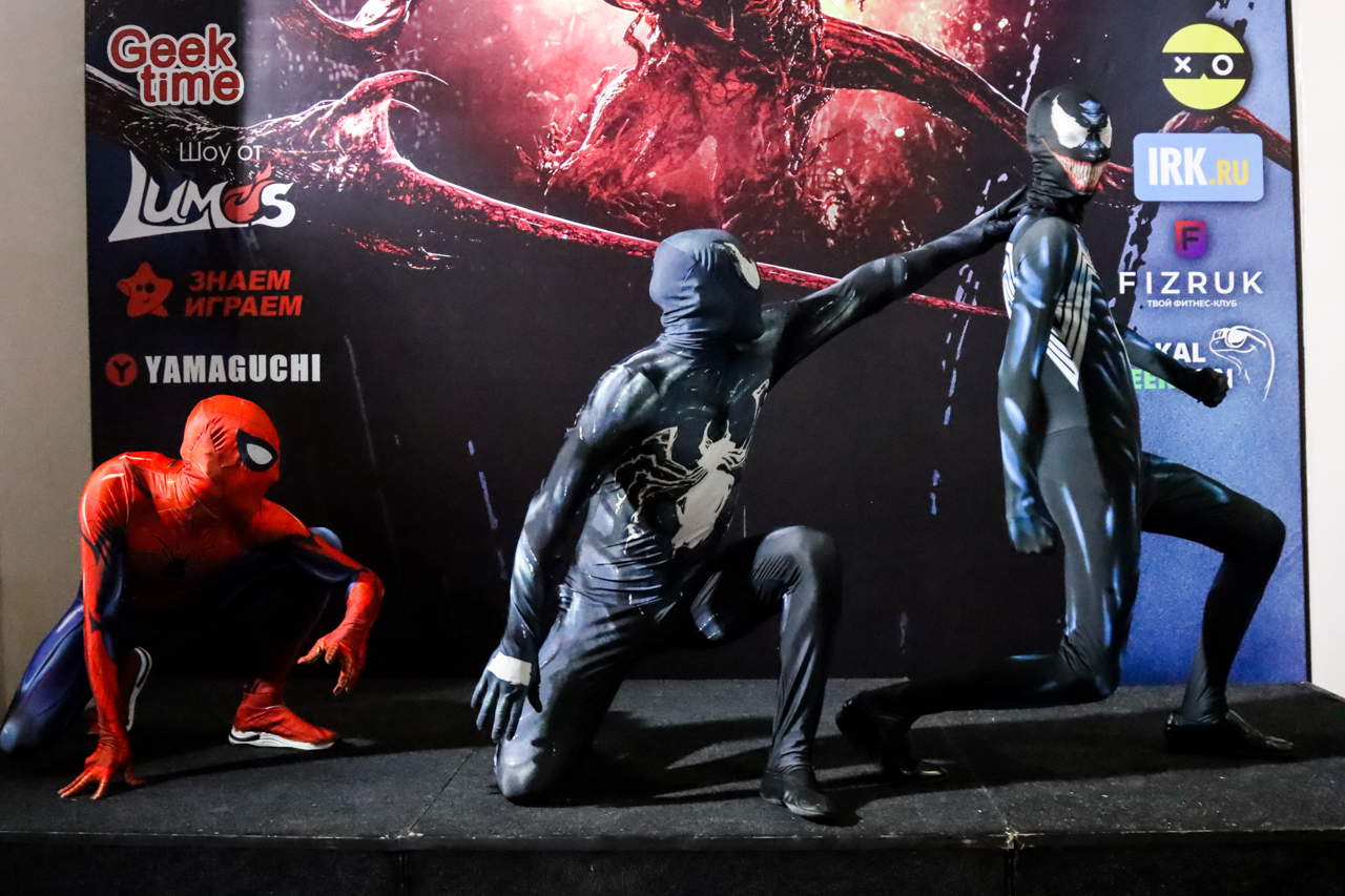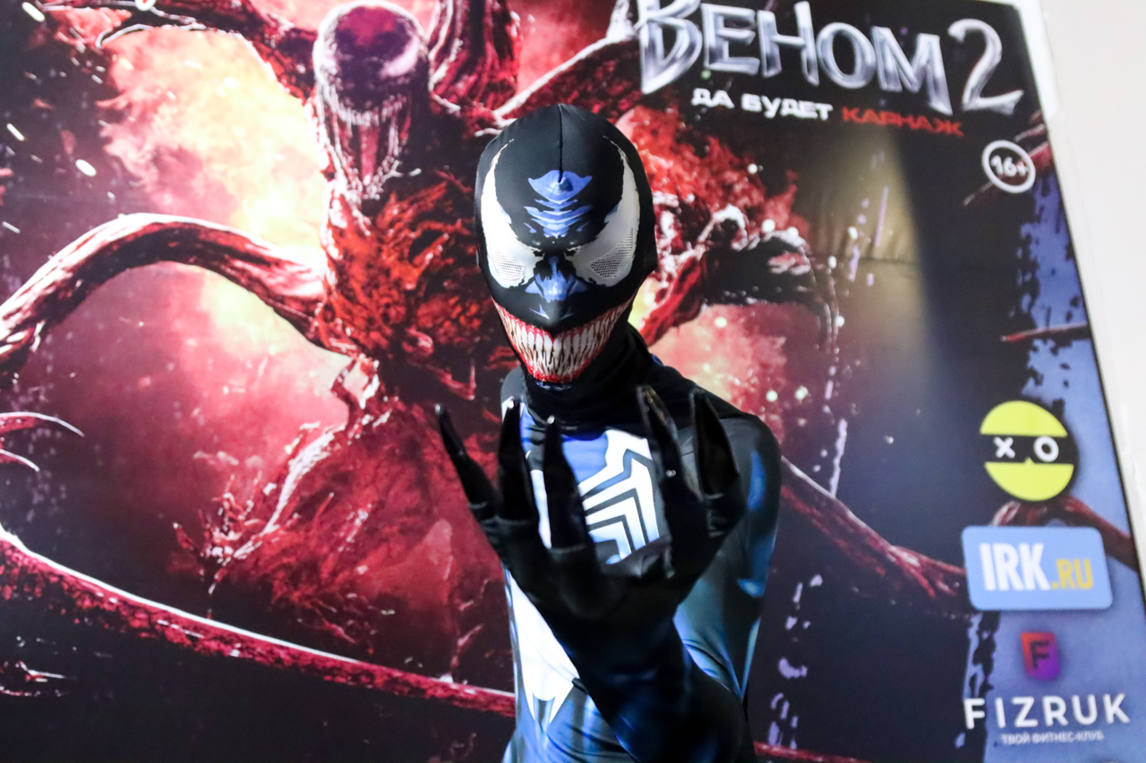 30 сентября в кинотеатре «Баргузин» прошел праздник в честь выхода фильма «Веном-2». Перед вечерним сеансом в холле кинотеатра зрителей ждала развлекательная программа: шоу-группа «Люмос», косплей-шоу, призы и подарки от партнёров, в числе которых IRK.ru.