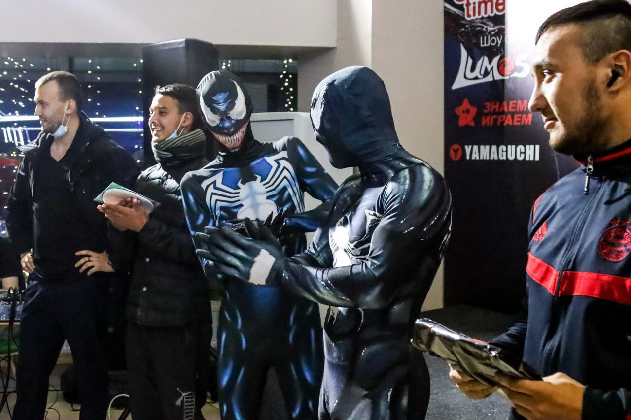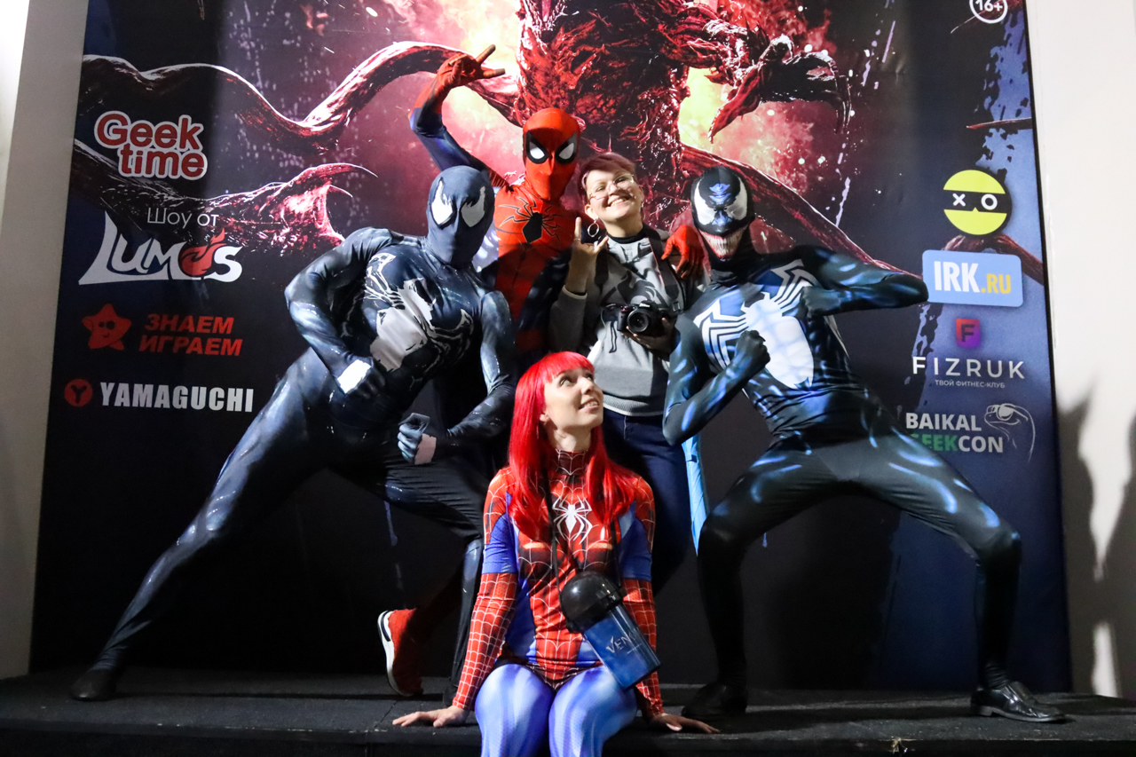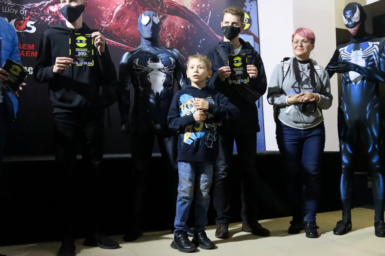 30 сентября в кинотеатре «Баргузин» прошел праздник в честь выхода фильма «Веном-2». Перед вечерним сеансом в холле кинотеатра зрителей ждала развлекательная программа: шоу-группа «Люмос», косплей-шоу, призы и подарки от партнёров, в числе которых IRK.ru.