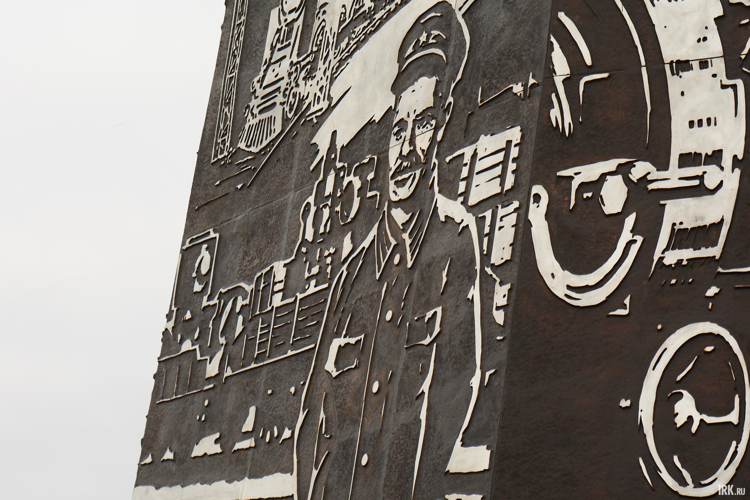 Стела выполнена по проекту московского архитектора Дениса Стритовича. Отличительная черта иркутской стелы — девять бронзовых панно, украшающих нижнюю часть монумента.