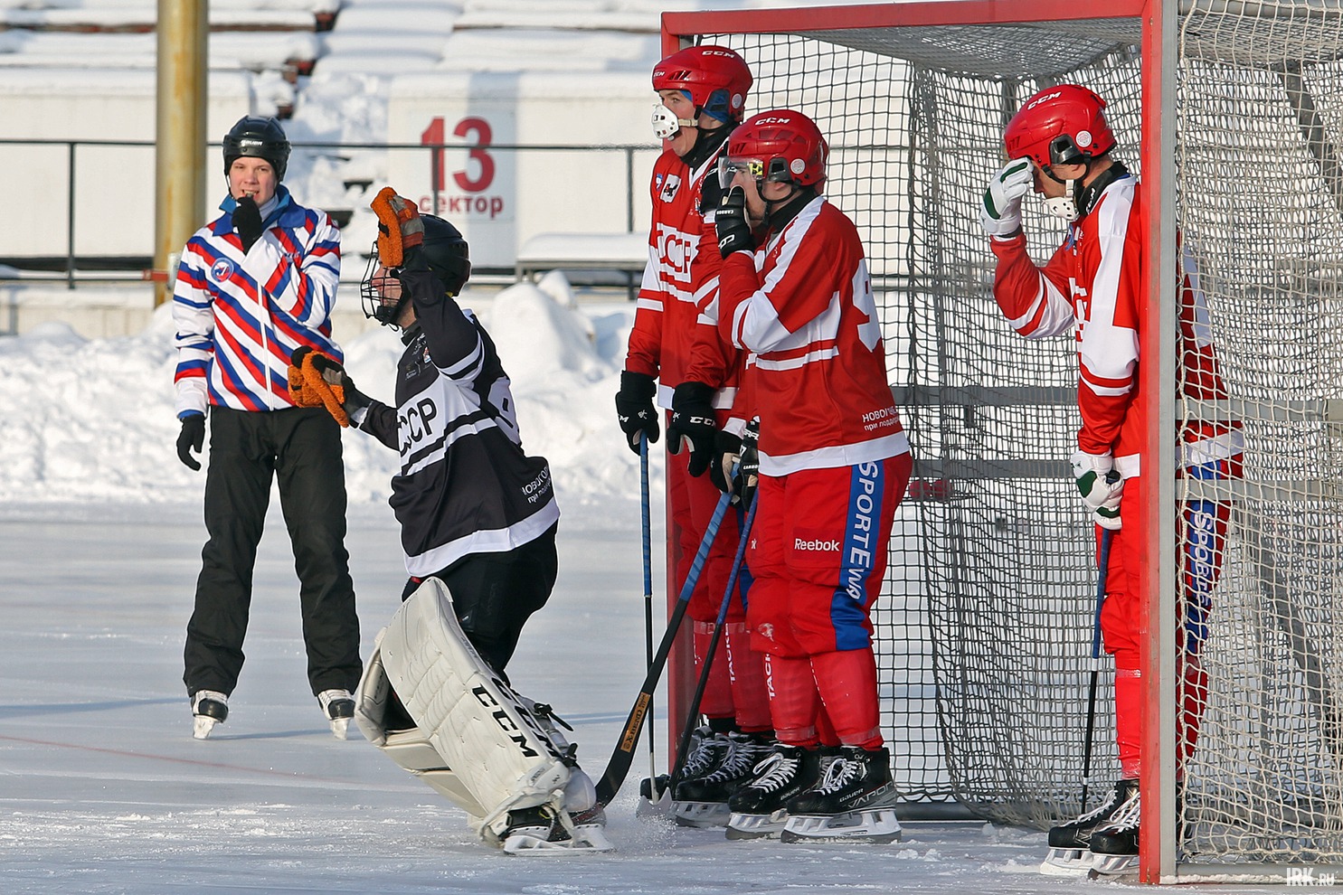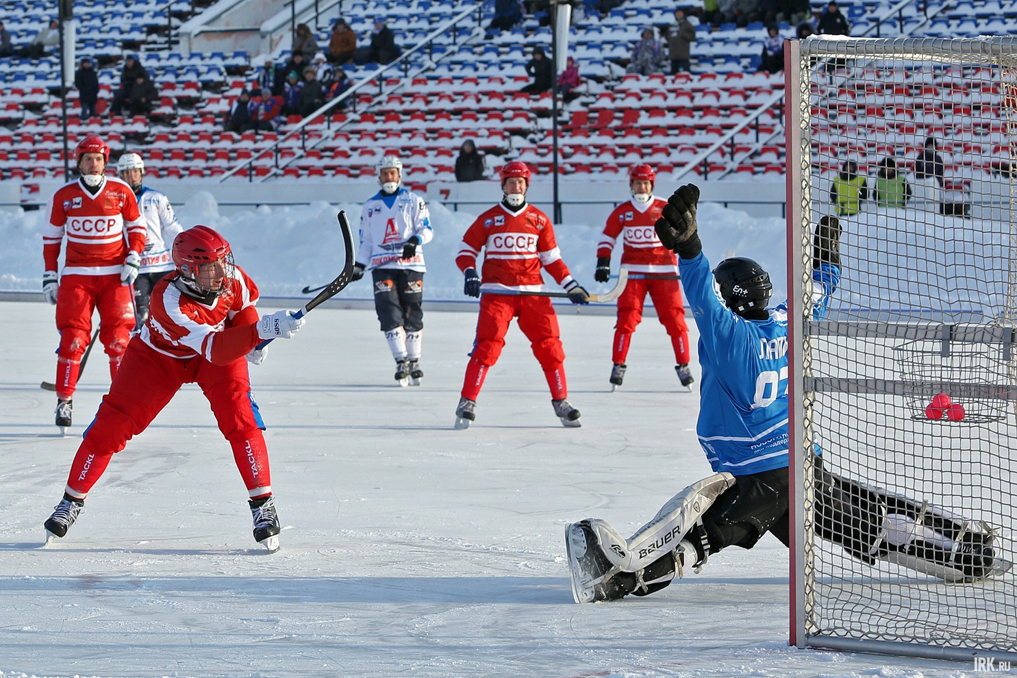 Переход из комфортных условий ледового дворца «Байкал» на свежий морозный воздух и естественный лёд лучше удался сборной СССР: открыв счёт уже на первой минуте, подопечные некогда легендарного вратаря, а ныне известного тренера Ильяса Хандаева (воспитанника иркутского хоккея, между прочим) уже к середине первого тайма довели своё преимущество до крупного — 5:0.