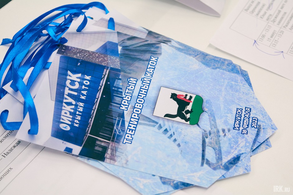 Название «Иркутск» для крытого катка предложили и выбрали горожане. Лёд украшает герб нашего города.