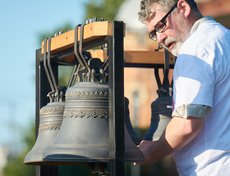 Ещё одним событием фестиваля станет звонильная программа в 130-м квартале (ул. 3-го Июля, 15/1). 14 июля с 17:00 до 20:00 позвонить в колокола на передвижной звоннице смогут все желающие.
