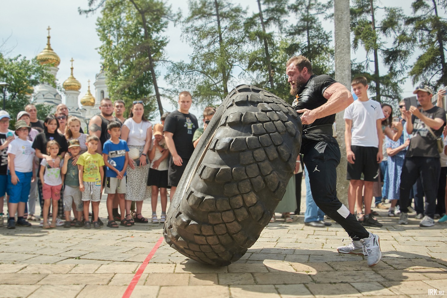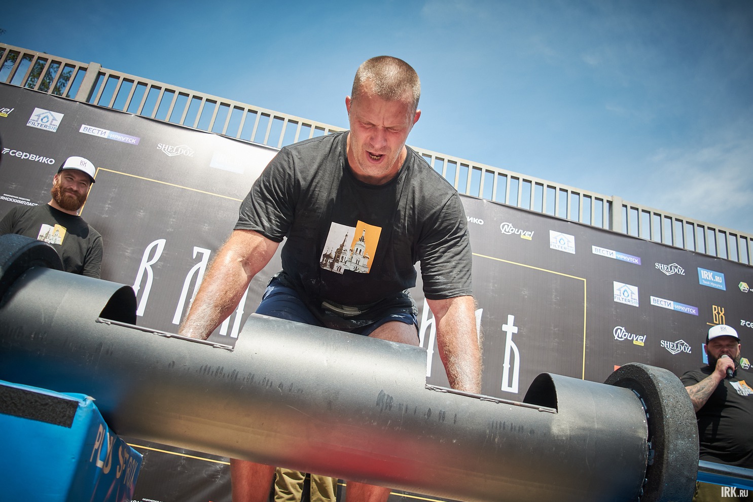 В соревнованиях приняли участие шесть силачей из городов Иркутской области. Их ждали испытания на выносливость: кантовка колеса, подъём камня, удержание бревна на вытянутых руках, тяга машины.