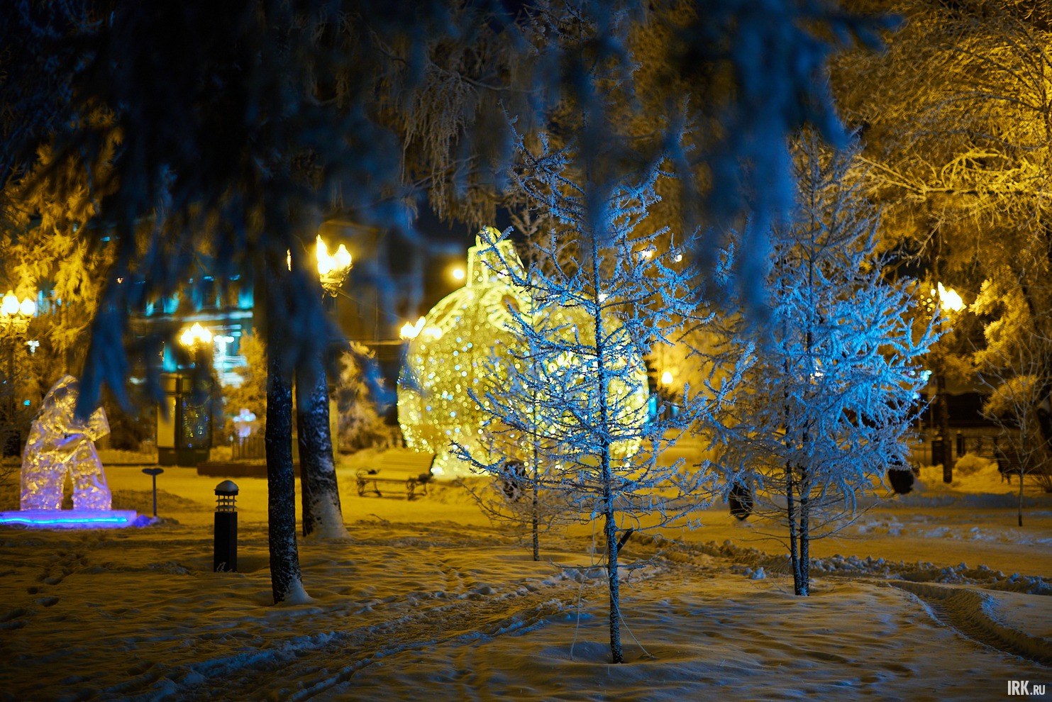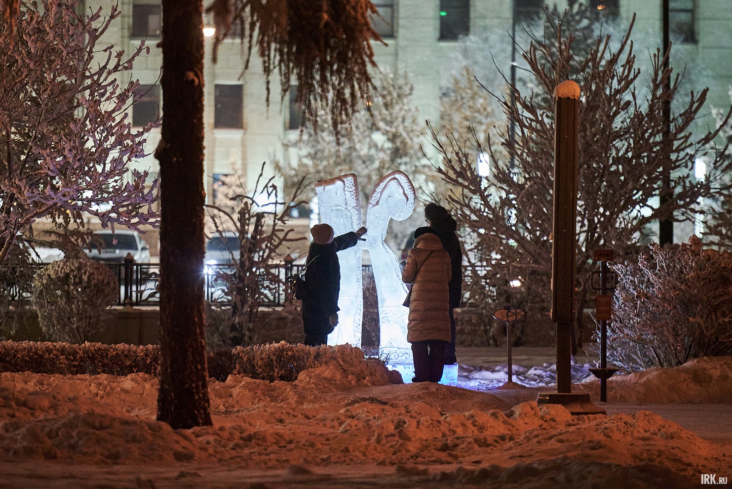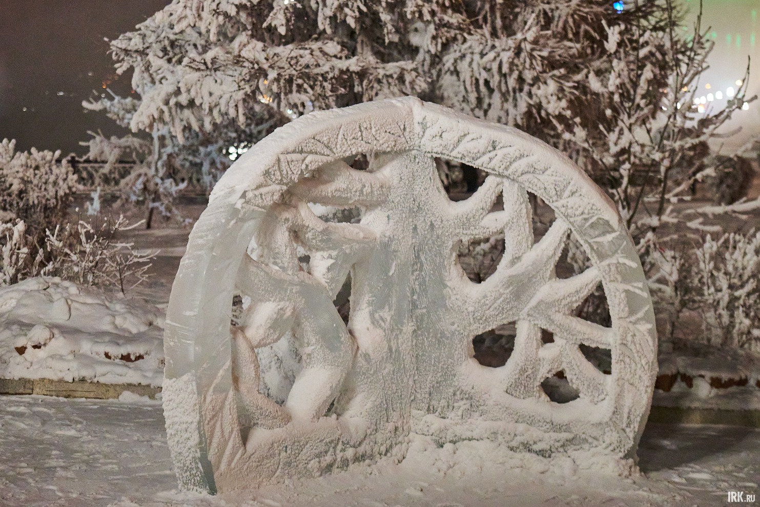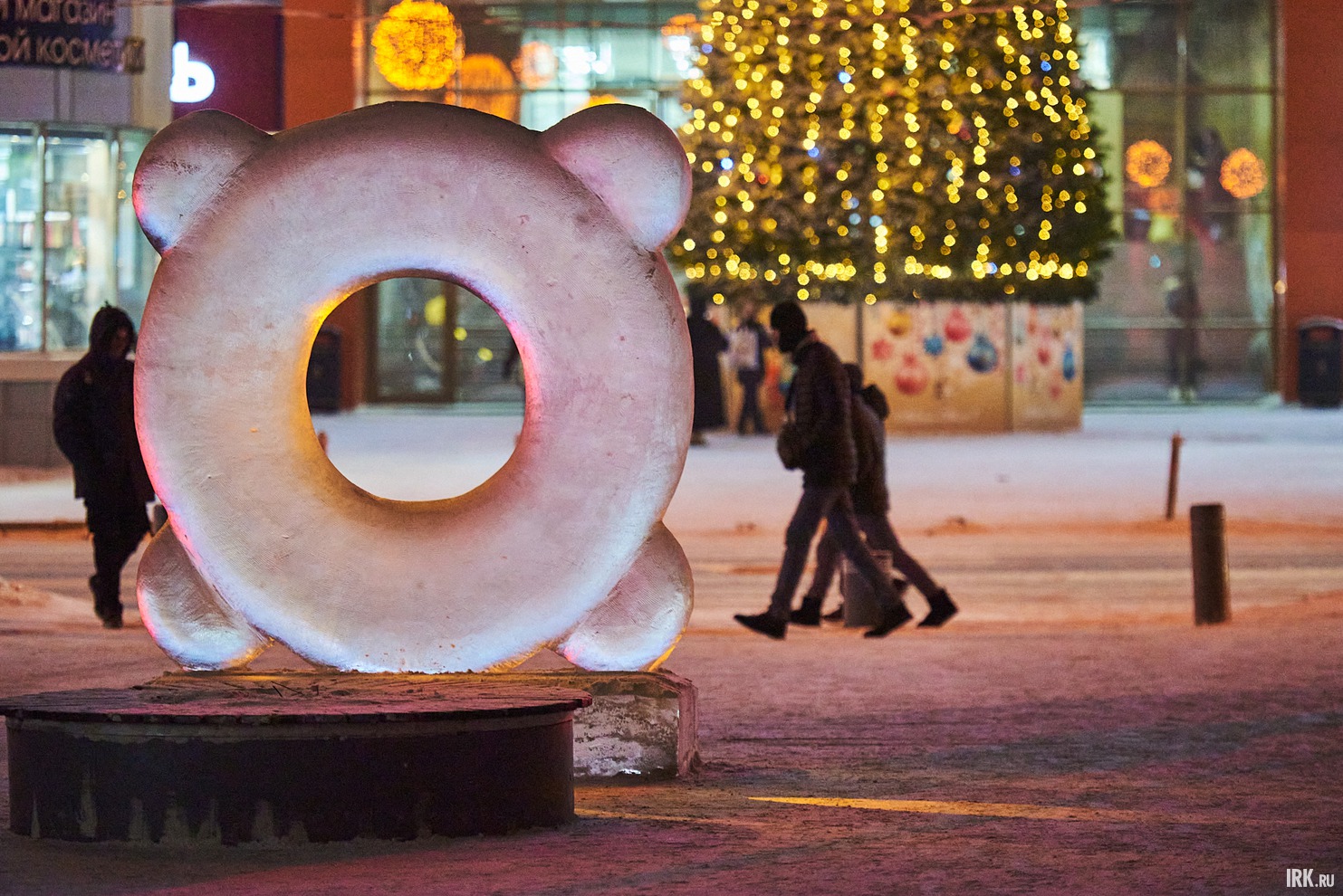 До Нового года осталось две недели, и в Иркутске уже можно увидеть праздничные украшения: ёлки, гирлянды. В этом году в городе будет много ледовых скульптур. Как раз сейчас мастера трудятся над ними днём и ночью.